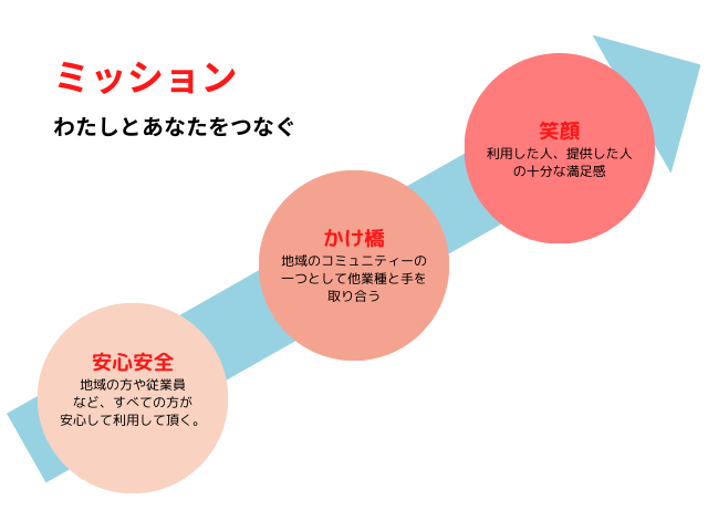 想いは様々ですが時代が変わり、どんなに便利になっても大事なものはやはり人を想う心。たくさんの想いが詰まった当社で皆さんと一緒に笑顔を届けたい。